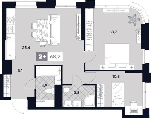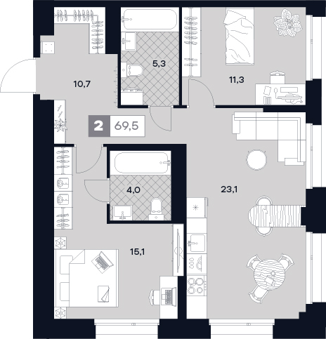 3-комнатная  78.6 м2